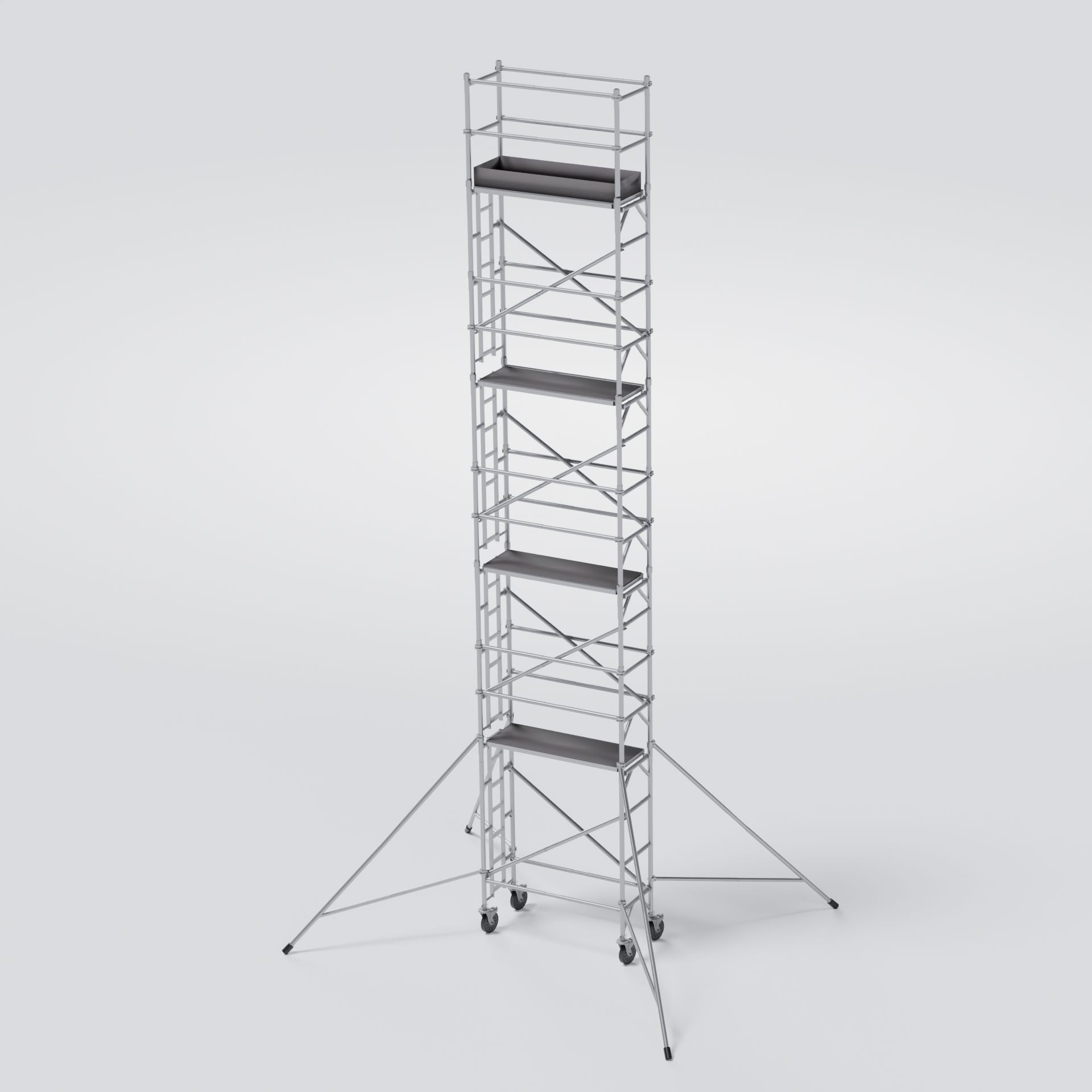 Aliumininių bokštelių konstrukcija yra tvirta ir lengva. Tai kokybiškas aliuminio bokštelis, skirtas vidaus ir lauko darbams. Rėmai su integruotomis kopėčiomis daug patogesniam ir saugesniam užlipimui.